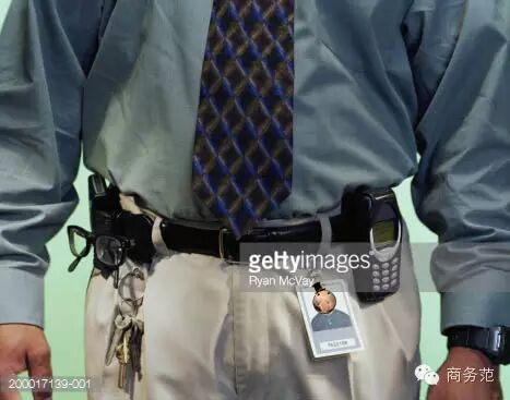 比如下面这位仁兄,眼镜、钥匙、呼机、手机、工卡一条腰带搞定~包包是什么,可以吃吗?