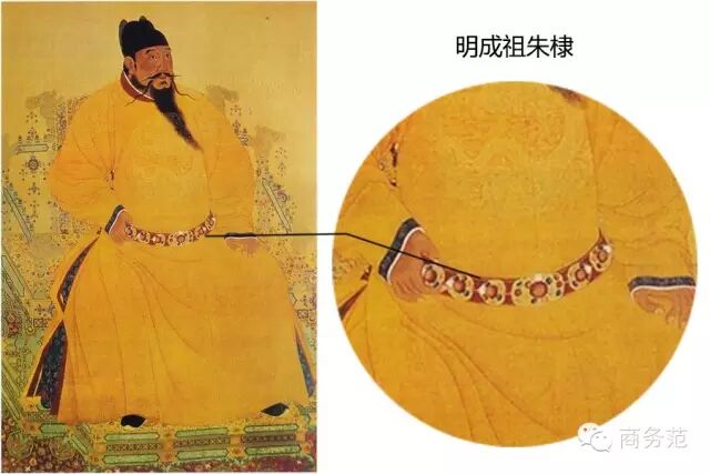 再看明朝,范主从画像上可以看出:朱棣的腰带上镶嵌了许多宝石,非常华丽。