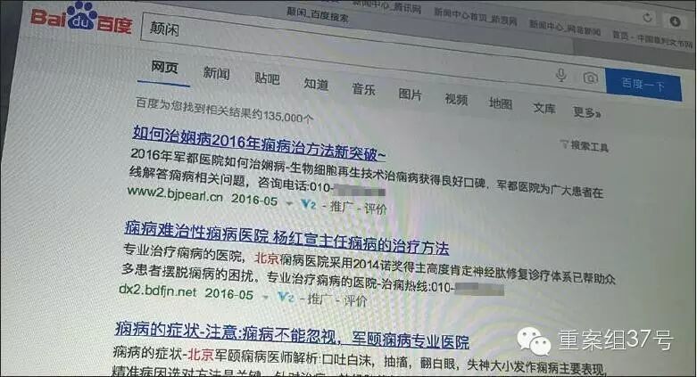 5月2日, 重案组37号探员搜“郑州妇幼保健院”,而出现的搜索页面头两条推广链接都是“郑州天伦医院”的网址。