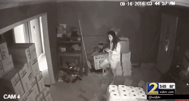 家庭内部的监控录像显示,三名劫匪破门而入,然后“兵分三路”,这时这位女士穿着短裤从卧室匆匆而出,迎面看到了三位持枪劫匪,她紧急开枪,一边开枪还一边往前冲,双方混战。